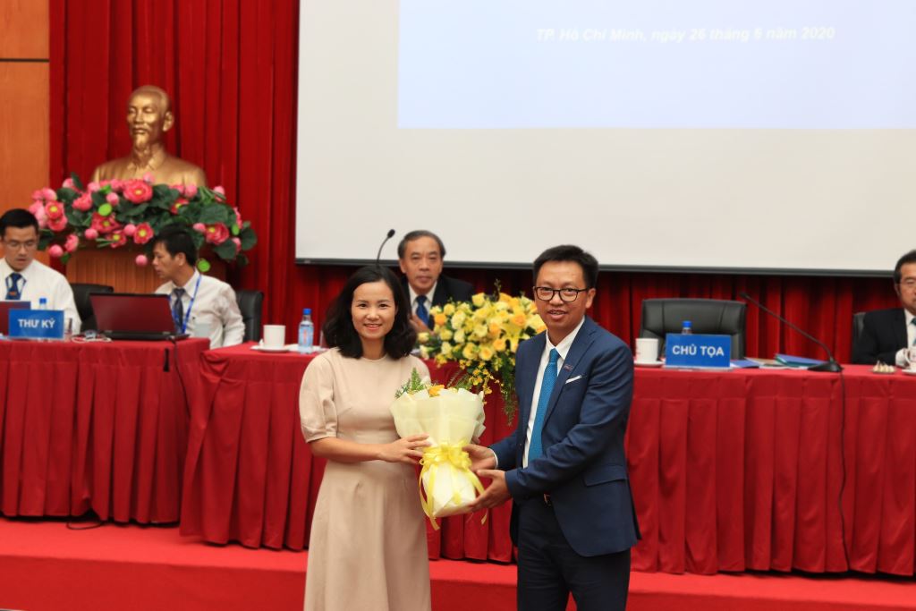 Chủ tịch HĐQT tặng hoa chúc mừng Bà Trần Thị Việt Hà