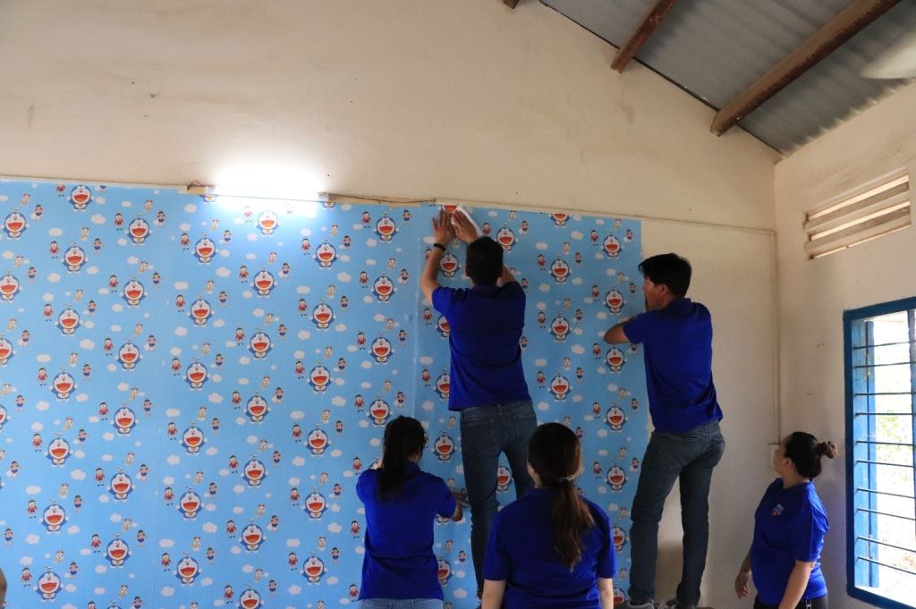 Sau nhiều giờ lao động hăng say, Đoàn cũng hoàn thành nhiệm vụ tạo nên một phòng thư viện nhỏ xinh cho các bạn nhỏ.
