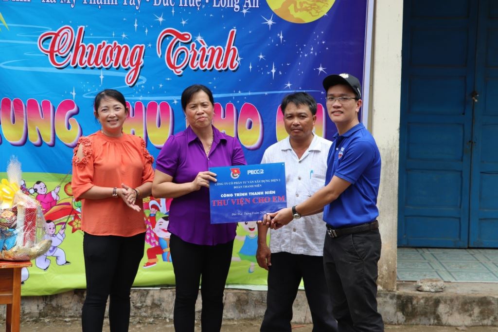 Hoàn thành sứ mệnh, ĐTN PECC2 trao tặng lại trường Mỹ Thạnh Tây phòng thư viện với khoảng 700 đầu sách, truyện của con em NLĐ PECC2 gửi gắm; kèm với đó là những chiếc đèn lồng, những cái bánh, cái kẹo để các bé chung vui trung thu.