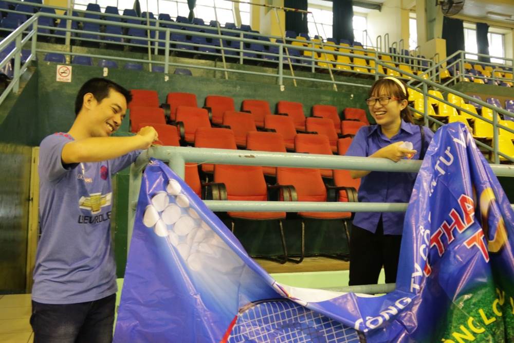 Các đoàn viên thanh niên tiếp lửa cho các vận động viên