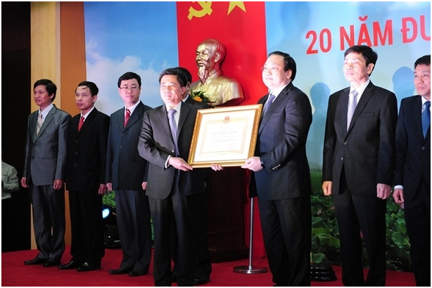 Phó thủ tướng Chính phủ Hoàng Trung Hải trao Huân chương lao động Hạng nhì cho Tổng công ty Truyền tải điện Quốc gia.