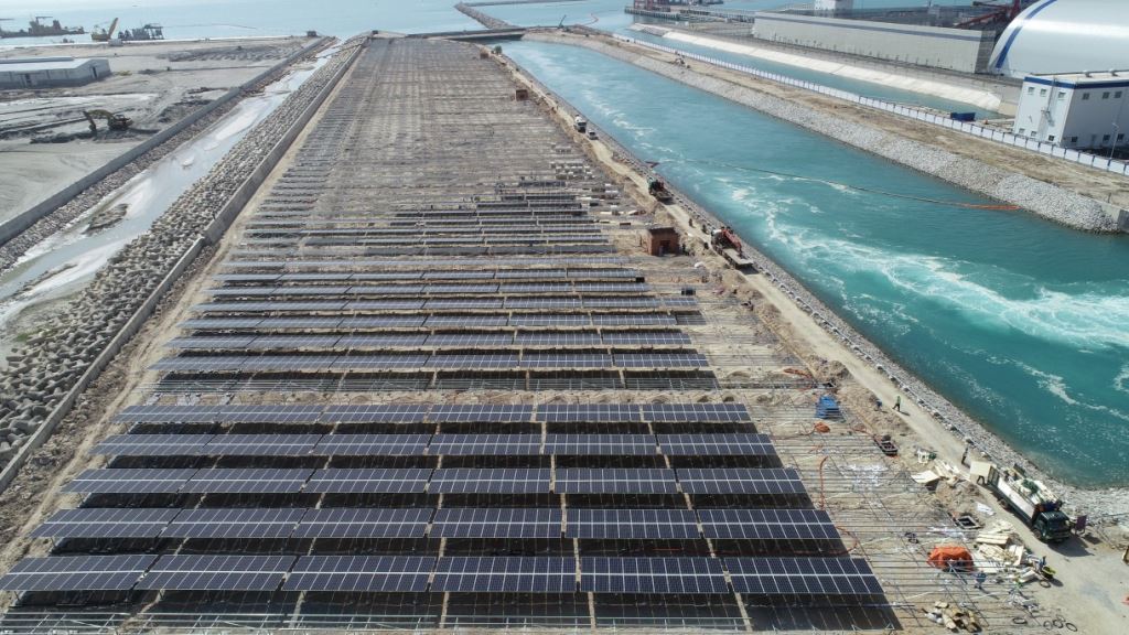 Công trường xây dựng Nhà máy Điện mặt trời tại Trung tâm Điện lực Vĩnh Tân tháng 12 Năm 2018