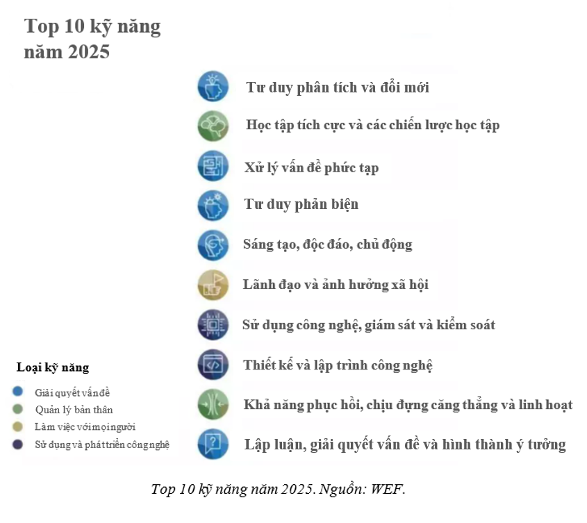 Tư duy phản biện và giải quyết vấn đề đứng đầu danh sách các kỹ năng mà nhà tuyển dụng tin rằng sẽ phát triển nổi bật trong 5 năm tới, nhất quán với kết quả báo cáo đầu tiên năm 2016.