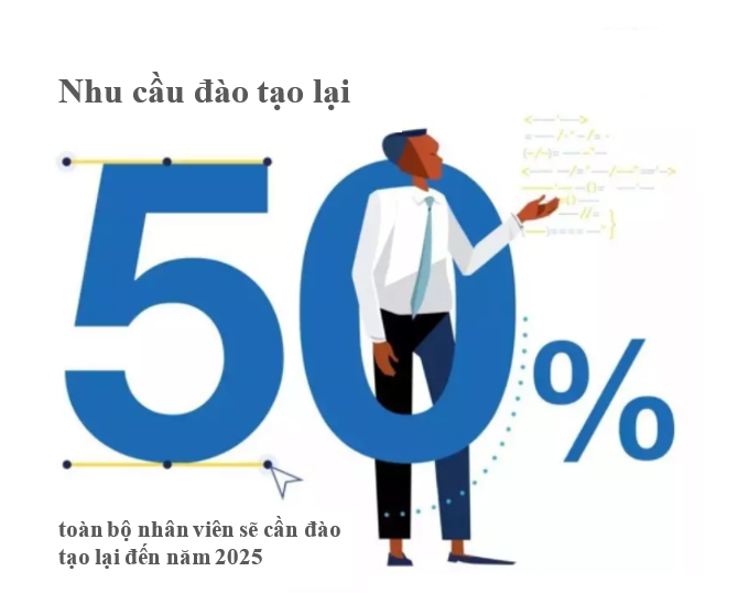 Không phải chỉ là chuyện của các tân cử nhân mới tốt nghiệp hay thực tập sinh, mà chính chúng ta - một nửa trong số chúng ta - sẽ cần phải được đào tạo lại trong 5 năm tới, dưới ảnh hưởng của 'gián đoạn kép' do tác động của đại dịch và xu hướng chuyển đổi tự động hóa. Diễn đàn Kinh tế Thế giới ước tính đến năm 2025, 85 triệu việc làm có thể bị thay thế do sự thay đổi phân công lao động giữa con người và máy móc.