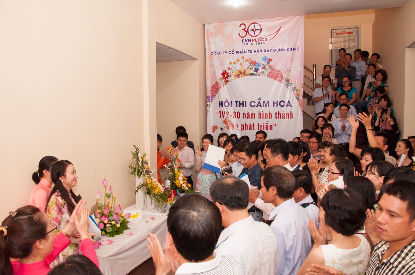 Hội thi thu hút sự tham gia của 12 tổ Nữ công đến từ các đơn vị và phòng ban Công ty. Nội dung thi gồm hai phần thi cắm hoa và thuyết trình ý tưởng. Các tổ Nữ công đều hào hứng chuẩn bị với rất nhiều phong cách và ý tưởng, khiến cuộc thi hết sức sôi động và ấn tượng. Thông qua vẻ đẹp của các loài hoa và bàn tay khéo léo, mỗi đội đã thể hiện tình cảm sâu đậm và niềm tự hào của mình về Công ty qua những tác phẩm đầy ý nghĩa như “Vươn ra biển lớn”, “Dòng thời gian”, “TV2 Tự tin – Tỏa sáng”, “Vươn lên tầm cao mới”, v.v... . Đó là tác phẩm với hoa Sen không lộng lẫy, kiêu sa mà thanh cao, thuần khiết, gợi sự liên tưởng tới sức sống mãnh liệt và vẻ đẹp tiềm ẩn trong công việc lẫn con người TV2. Hoa Hướng Dương đón ánh mặt trời hay hoa Thiên Điểu vút cao mạnh mẽ, thể hiện tinh thần vươn lên không ngừng của tập thể TV2. Những loài hoa mềm mại, yêu kiều như hoa Lan, hoa Hồng lại tượng trưng cho những người phụ nữ TV2 dịu dàng nhưng luôn sát cánh, chia lửa cùng những đồng nghiệp nam, đồng thời cũng là hậu phương vững chắc cho gia đình riêng của mình cũng như cho ngôi nhà chung TV2.