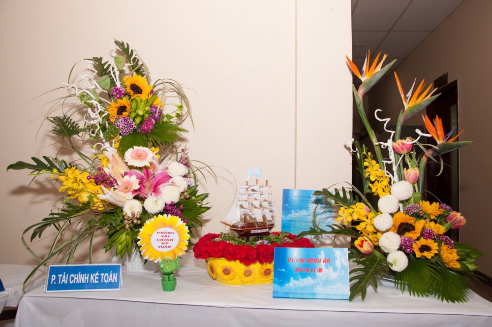 Các tổ Nữ công đều thể hiện được tinh thần đoàn kết, tính sáng tạo và tâm huyết trong từng tác phẩm của mình. Có thể nhắc đến tác phẩm của Phòng tài chính-Kế toán với hình tượng con thuyền TV2 “Vươn mình ra biển lớn” có biển số là mã số thuế công ty, với những cánh buồm mang tên những đơn vị sản xuất như Ban EPC, 3 Trung tâm và 2 Xí nghiệp, cùng với lá cờ là logo 30 năm TV2 trên một biển hoa tươi tắn, sắc màu hài hòa. Nói đến tính sáng tạo thì không thể không nhắc đến hình tượng chữ S được kết bằng suối hoa hồng gắn trên một mô hình cột thép mạ kẽm, tượng trưng cho những sản phẩm của Xí nghiệp Cơ điện đã trải dài từ Bắc chí Nam. Một nét riêng đặc biệt nữa chính là con thuyền “Ra khơi” của Ban EPC, với cột buồm hoa chuối rực đỏ mạnh mẽ, những cành lan Hồ Điệp và những cánh hồng vàng rạng rỡ thể hiện sức trẻ, bản lĩnh và nhiệt huyết của con người TV2. Còn đây nữa thác lan tím duyên dáng của Tổ nữ công củaTrung tâm Tư vấn Thủy điện và Năng lượng Tái tạo, kệ hoa rực rỡ của Trung tâm Tư vấn Nhiệt điện và Điện hạt nhân với 5 sắc màu Kim-Mộc-Thủy-Hỏa-Thổ tượng trưng cho 5 lĩnh vực của TV2 cùng đơm quả ngọt trên cành. Còn rất nhiều ý tưởng tác phẩm hoa vô cùng ý nghĩa khác nữa mang tâm tư tình cảm của chị em mà bài viết nhỏ này không thể điểm lại hết. Những tác phẩm hoàn thành như thay lời muốn nói, thể hiện rõ tình yêu đối với Công ty và đồng nghiệp; lòng nhiệt huyết, sáng tạo đối với công việc của Phụ nữ TV2.